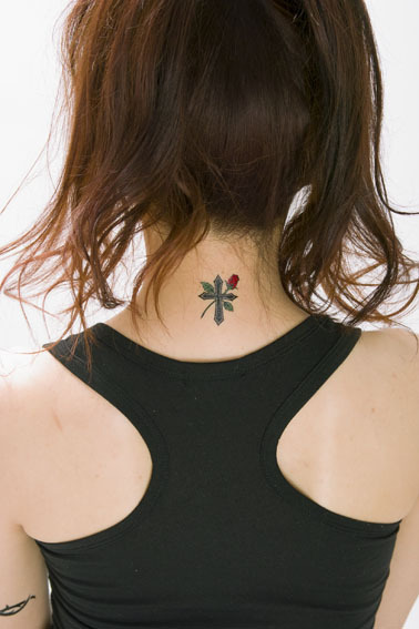 お洒落のワンポイントに!ミニサイズのペーパータトゥーシール「ローズ&クロス」。