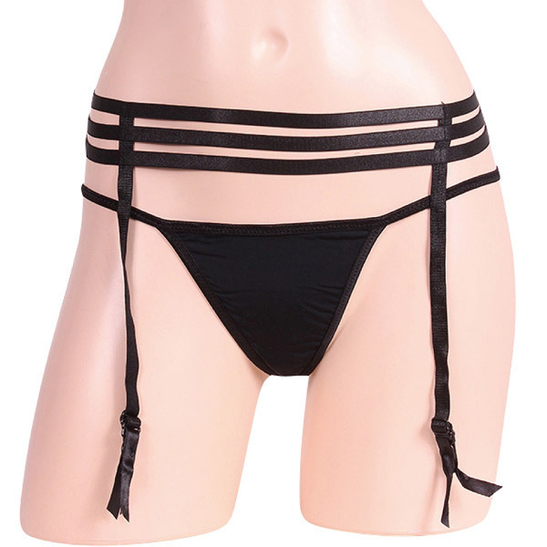 ウエスト部分に3本のラインを均等に配置してシンメトリーな美しさを追求したガーターセット。