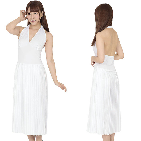 大胆にV字カットされた胸元と大きく開かれたバックスタイルは、20世紀最強とも言えるセックスシンボルにも引けをとらないセクシーさで貴方を輝かせる♪吹き上げる風を演出することでプリーツ多めのスカートがふんわりと優雅に広がり、あの名シーンが再現できちゃうかも!?お好みでタトゥーシールを貼って更なるハロウィン気分を味わうのも♪