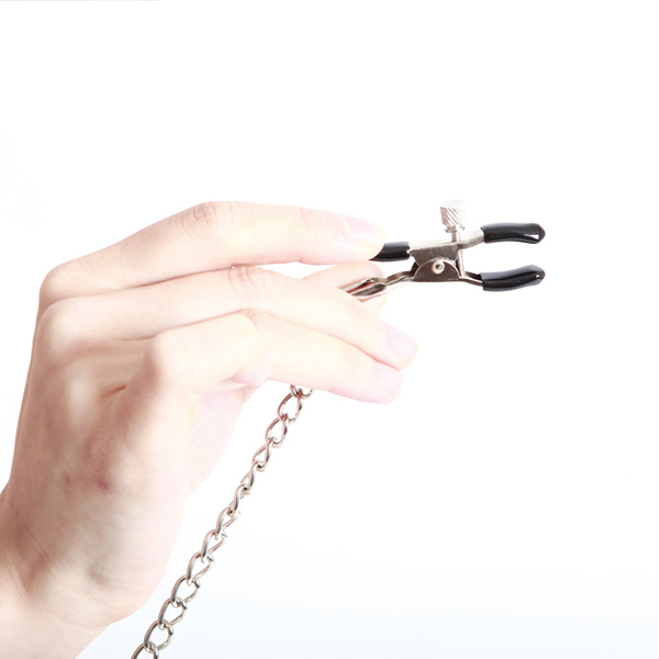 冷たい金属の質感とほかの素材にはないホールド感の違いを味わってください!クリップの先端は柔らかく弾力のあるゴムがついているため、跡が残りにくく挟む強度を調整できるため、パートナーのレベルに合わせた調教が可能です!