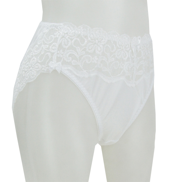 光沢柔らかレース付きフルバック ホワイト LL