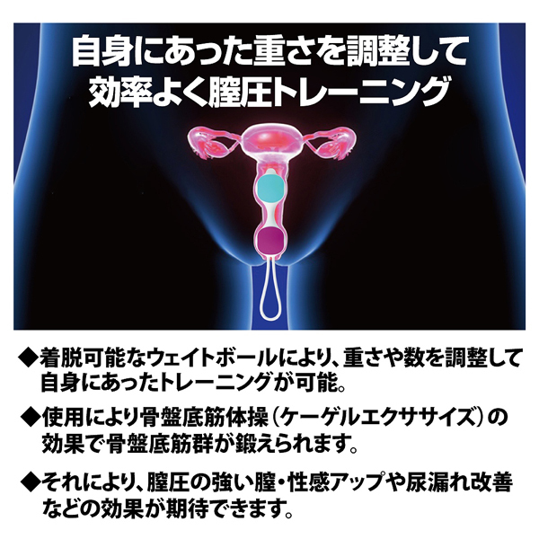 あそこをキュッと引き締め魅力&感度UP!重さ調整可能な着脱式ボールで効率よく鍛えられる膣トレグッズ。