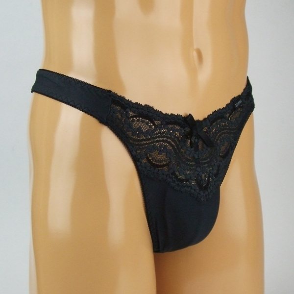 メンズ ストレッチ&レースコンビTバック (ブラック)