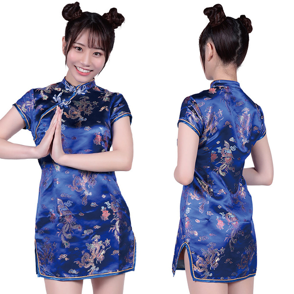 攻めるチャイナ服 ミニ ブルー