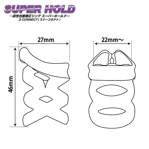 3つの連なったリングが皮戻りをがっちりホールド!継続して装着することで蒸れを抑え、清潔な状態をキープします。