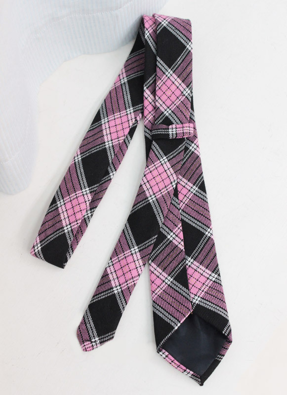 手軽なマンネリ対策として、コスプレ小物をチェンジ!襟元のリボンを、白シャツに映える大人可愛いチェックのネクタイに変えてみませんか?