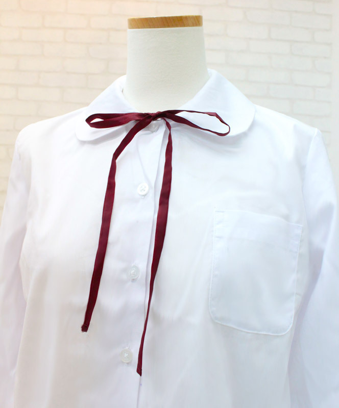 ひも状の細長いリボンを襟元で結べば、お嬢様学校風のスタイルに早変わり!女の子らしさが際立つエンジ色で、キュートなスクールガールになれちゃう紐タイです。
