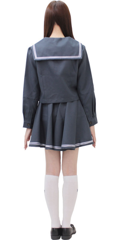 チャコールグレーに白のダブルラインが珍しい!有名学校の制服コスチューム。