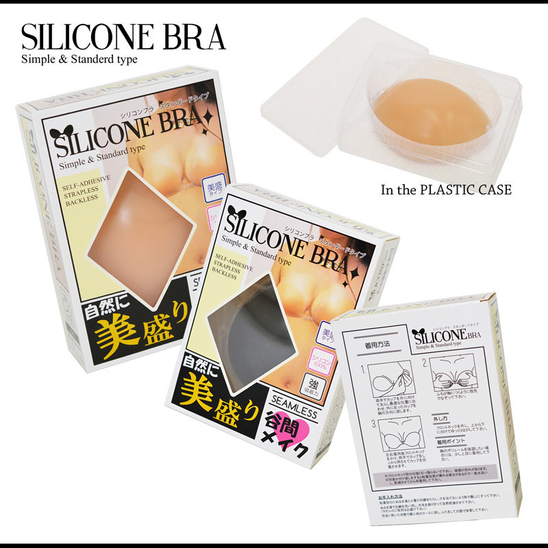 バストにピタッとフィットする安心の粘着感!フロントホックで簡単に着用できるブラックカラーのシリコン製ブラ。