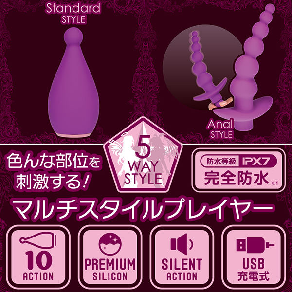 本体はスモールボールヘッドタイプと特徴的で、トータル5wayとマルチスタイルで遊べる高機能なローターとなっています♪本体部分とアタッチメントには高品質なシリコン素材を採用。