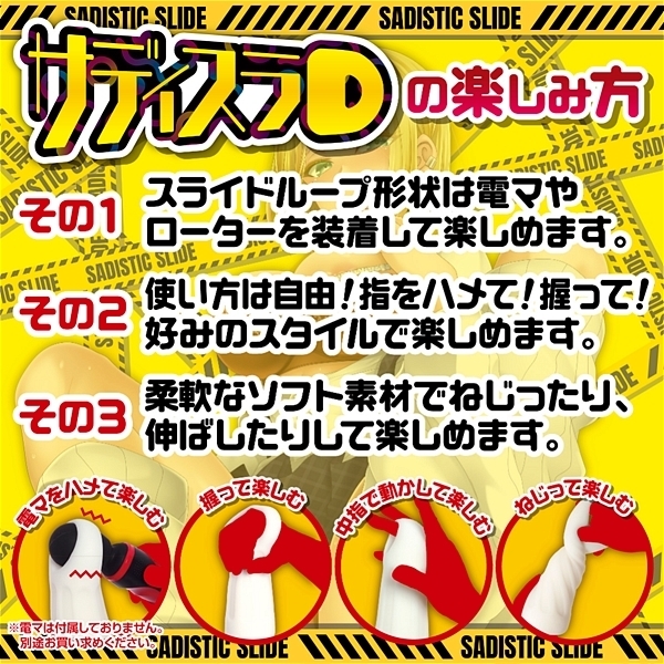 上部に空いている「スライドループギミック」は電マやローターをハメたり、引っ張ったり、握ったり、ねじったりと、いろいろな楽しみ方で遊べます。